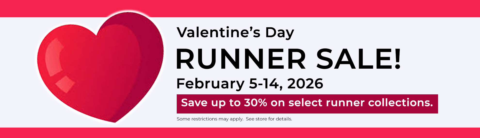 This Valentine's Day Sale is a rare opportunity to add warmth and color to your home's pathways with a runner that is unique to you, not found anywhere else in the world. Don't miss out.